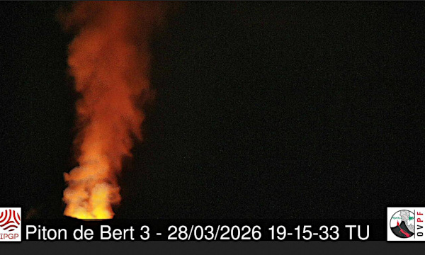 29 mars 2026 9 heures (heure métropole) : L’éruption du Piton de la Fournaise a repris le 28 mars vers 15h (heure locale).Selon l’OVPF, l’activité ayant repris au niveau du même site éruptif, sans ouverture de nouvelle fissure ni injection de nouveau dyke, il s’agit d’une reprise de l’éruption débutée le 13 février 2026 et non d’une nouvelle éruption. J’avais expliqué qu’il s’agissait probablement de la vidange d’une poche résiduelle de magma. À noter qu’une légère inflation de l’édifice est enregistrée sur les 3 derniers jours, témoignant de la remise en pression du réservoir de magma superficiel. Cette inflation s’accompagne d’une légère hausse de la sismicité. L’intensité du trémor éruptif a augmenté progressivement en fin de journée le 28 mars, avant de stabiliser puis de ré-augmenter légèrement en début de journée le 29 mars.