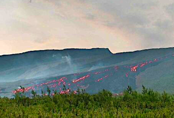 No new activity is observed at the coastal platform, but such an event cannot be ruled out, nor can an intensification of the gas plume where the lava enters the ocean.