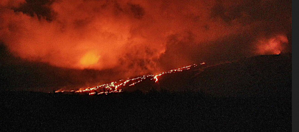 17h30 (heure métropole) – 19h30 (heure locale) : La nuit est tombée sur l’île de la Réunion et le Piton de la Fournaise se donne en spectacle (image webcam).