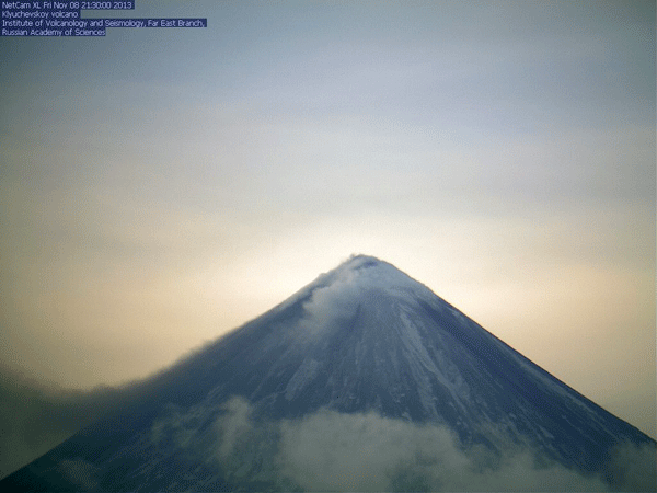 Activity at Klyuchevskoy has declined and the aviation colour code was lowered to Yellow on October 30th. Seismic activity is moderate. Strombolian activity is still observed together with gas and steam emissions. Satellite images reveal a thermal anomaly over the volcano caused by the lava flows on the SW and SE flanks of the volcano.