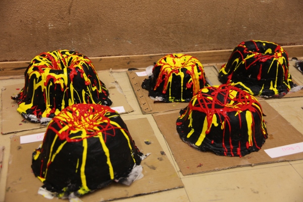 Pendant une semaine, des centaines d’écoliers et des centaines de visiteurs sont allés dans la très grande salle polyvalente du village pour participer à des ateliers pour les uns, visiter des expositions, et/ou assister à des projections pour les autres. Les expositions montraient des photos rapportées des régions volcaniques du monde par certains organisateurs. On pouvait aussi admirer l’exposition prêtée par L’Association Volcanologique Européenne, sans oublier les photos de Katia et Maurice Krafft mises à disposition par le Conservatoire Régional de l’Image de Nancy. Des échantillons de roches complétaient le tableau. Les adhérents de L.A.V.E. et de la S.V.G. ont proposé des conférences et de magnifiques vidéos tournées, entre autres, en Islande, sur le Kawah Ijen et à Yellowstone. Les enfants des écoles ont participé à des ateliers où ils pouvaient confectionner eux-mêmes des volcans colorés en forme de kouglof alsacien.