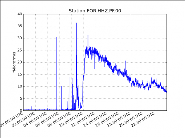 12 heures (heure métropole) :L’intensité du tremor a diminué progressivement au cours de la nuit. (voir ci-dessous)
