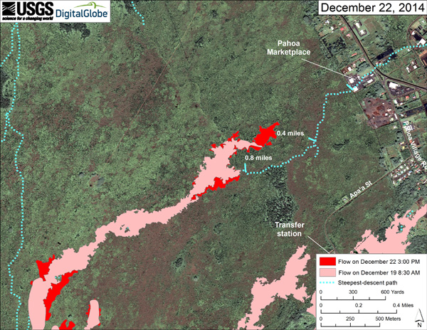 La lave était une menace pour Pahoa à la fin de l’année 2014 (Source: USGS / HVO)