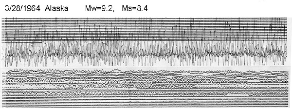 Sismogramme du séisme de mars 1964 à Anchorage (Source: IRIS)