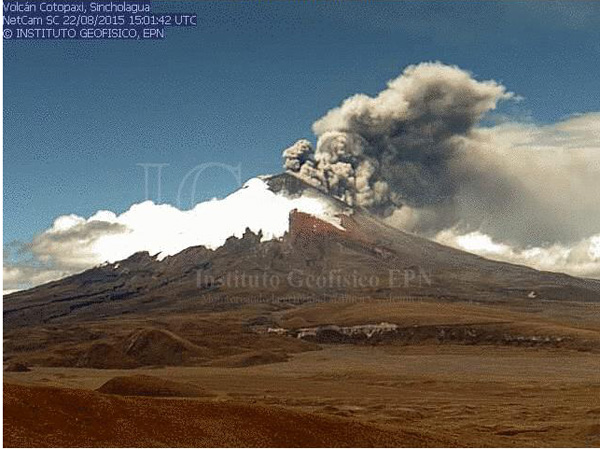 Vue du Cotopaxi le 22 août 2015 (Crédit photo: Instituto Geofisico)