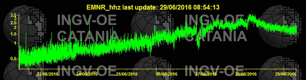 Au cours des derniers jours, la sismicité a montré une certaine hausse sur l’Etna. Il n’y a aucune activité visible au sommet, mais le réseau sismique a commencé à enregistrer le 23 juin une augmentation régulière de l’amplitude du tremor. Bien que ce dernier soit maintenant reparti à la baisse, la situation pourrait indiquer une migration du magma vers la surface et annoncer une nouvelle phase d’activité dans un avenir proche.