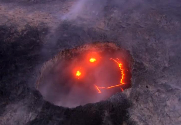 A Hawaii, la coulée 61g de lave reste active et continue à entrer dans l’océan. Pélé, la déesse du feu, a donc retrouvé sa soeur, Na Maka, la déesse de la mer. Au moment où elle tombe du haut de la falaise pour atteindre la mer, la coulée à une vingtaine de mètres de large. Un autre bras de lave avance également le long de la bordure ouest de la coulée principale. En cliquant sur ce lien, vous pourrez voir une vidéo tournée par l’agence Paradise Helicopters :