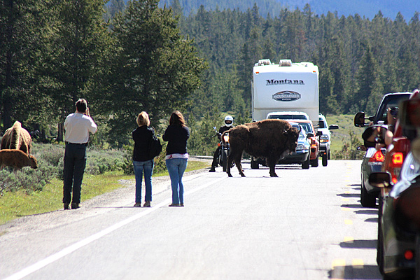 drapeau-francaisComme je l’ai écrit précédemment, les parcs nationaux américains sont devenus de plus en plus populaires. Par exemple, chaque année des dizaines de milliers de personnes visitent le parc national de Yellowstone et celui des volcans d’Hawaï. Pourtant, Yellowstone n’a jamais autant ressenti la pression du tourisme qu’en 2016. Pendant plusieurs jours, on a observé des files de véhicules sur plusieurs kilomètres à l’entrée ouest du parc, à West Yellowstone, qui est la plus fréquentée. Une fois que les automobilistes ont franchi cette porte du parc, ils sont confrontés à de nouveaux bouchons pour se rendre sur le site du Vieux Fidèle, souvent à cause de la présence d’animaux sauvages sur la route ou à proximité. Chaque fois qu’il y a un wapiti, un  grizzly, ou un bison, les gens sortent des voitures pour prendre des photos. Enfin, après avoir atteint le célèbre geyser, ils se retrouvent dans un parking grand comme un stade, mais qui est souvent plein comme un oeuf. La situation peut même être pire au parking du Grand Prismatic qui est bien trop petit pour accueillir tant de voitures.