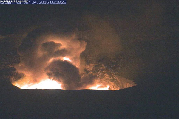 Explosion nocture dans l’Halema’uma’u le 4 janvier 2016 (Source: HVO)
