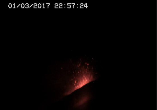 Vue de l’éruption le 1er mars au matin (Webcam L.A.V.E.)