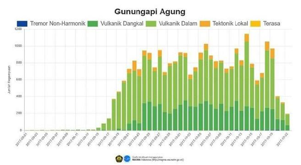 Evolution de l’activité sismique sur l’Agung (Source: VSI)