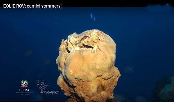 The discovery is the result of research by the late John Borthwick, an oceanographer at ISMAR-CNR, who had sought to understand the nature of a spectacular activity that had been observed among the islets near Panarea in November 2002. Since that time, many oceanographic surveys have been conducted by ISPRA’s Astrea and CNR’s Urania and the Navy, to study the area and identify other degassing zones. In 2015, during one of these campaigns, a remotely controlled robot, equipped with a video camera, a camera and a mechanical arm, identified at the bottom of the sea, south of Basiluzzo, several chimneys heavily colonized by algae and benthic organisms. Some of them were obviously emitting hydrothermal fluids and gas bubbles. (see the video below)