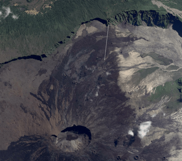 17:00 (Paris time): OVPF’s latest bulletin confirms that the eruption continues on the northern flank of the Piton de la Fournaise high above the Grandes Pentes. The tremor is increasing. A long fissure about 1 km long opened in 7 distinct segments, two with emissions of lava fountains. The last active segment is just at the foot of the rampart below the Nez Coupé de Sainte Rose. As I indicated previously, rockfalls were registered in the rampart in the area of the Nez Coupé de Sainte Rose, and many fumaroles were observed on this site. The opening of new fractures inside or outside the Enclos remains possible.