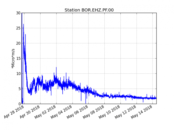 The intensity of the tremor has been relatively low but stable over the past days. Activity is mainly in tunnels and the output of the surface klava flows can no longer be estimated from satellite data.