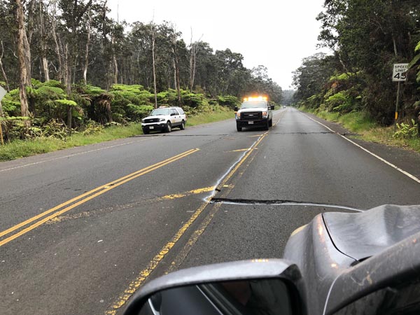 Les autorités locales demandent aux automobilistes de ralentir et faire preuve de prudence sur la Highway 11, en particulier entre les bornes kilométriques 28 et 29, ainsi que sur la Pi’i Mauna Poad, où la plupart des dégâts ont été observés. Le Parc des Volcans, qui a compétence sur la Highway 11 entre les bornes kilométriques 28 et 38,5, a décidé de ne pas fermer cette route à la circulation malgré la présence des fractures. Il est rappelé aux automobilistes qu’il est interdit de s’arrêter sur les accotements de la Highway 11 dans le Parc pour des raisons non urgentes.