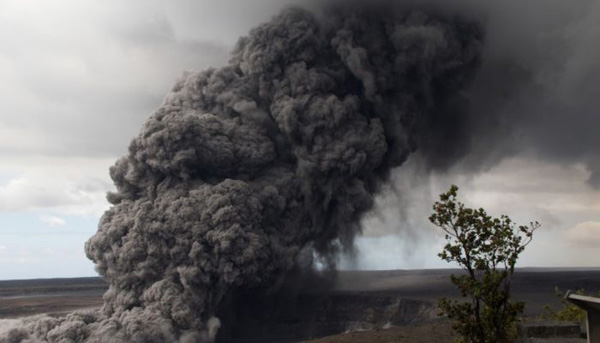 Panache de cendre au-dessus du cratère de l’Halema’uma’u (Crédit photo: USGS)