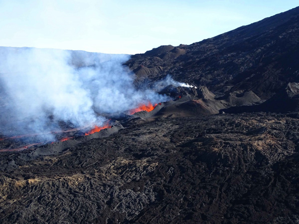 Comme indiqué plus haut, les abondantes émissions de lave de la fracture n°8 ont provoqué la formation d’un chenal surélevé qui s’est creusé le long de la bordure ouest de la coulée. Les flancs de ce chenal sont fragiles et leur rupture pourrait entraîner la formation de nouvelles coulées se propageant rapidement. L’approche de ce chenal est donc à éviter à tout prix.