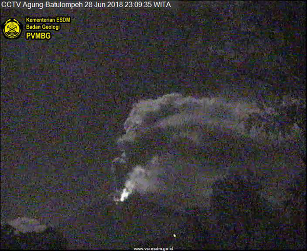 L’activité de l’Agung le 28 juin 2018 vue par la webcam