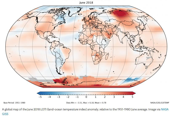 Le mois de mai 2018 a été le quatrième plus chaud depuis le début des relevés de la NASA en 1880.
