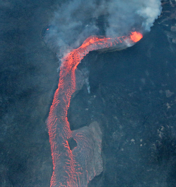 As far as I am concerned, I have studied the possible link between atmospheric pressure and volcanic activity on the Sicilian island of Stromboli. You can find an abstract of the study in the left-hand column of this blog. To put it shortly, I have found no real significant evidence of a relationship between atmospheric pressure and Strombolian activity. Stromboli is a small volcano with a limited amount of magma at stake, compared with Kilauea. I have not studied the phenomenon while a major storm or a hurricane was passing over the volcano. However, changing the scale, I do not think the low pressure system caused by Hurricane Hector could increase activity at Hawaii. By the way, it should be noted that the current eruption at Fissure 8 decreased during the past days. We’ll see whether the hurricane can have an influence on Madame Pele…