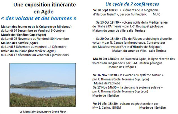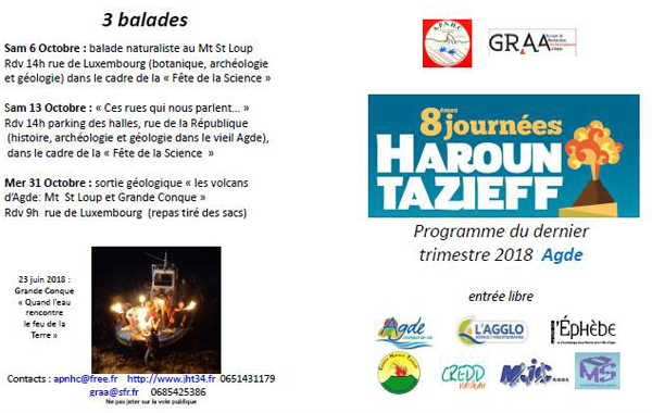 Voici le programme des 8èmes Journées Haroun Tazieff pour le dernier trimestre 2018: