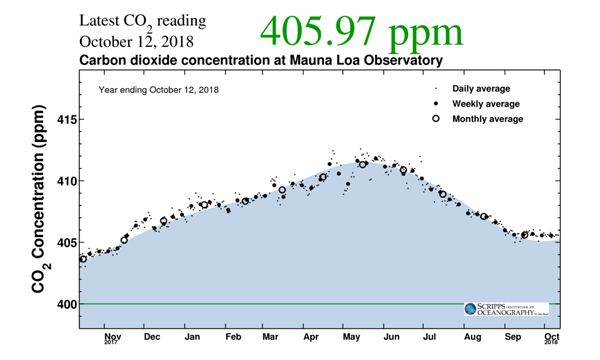 Pour l’année en cours (janvier-septembre), 2018 est à +0,81°C. Le trio record 2015-2016-2017 est encore devant à la faveur de conditions qui furent plus chaudes dans le Pacifique. Les températures de surface de la mer sont cependant en train de remonter dans l’océan Pacifique central et oriental, en phase de transition très probable vers un petit El Niño. Malgré la tendance à la baisse des températures dans le Pacifique depuis 2016, due à la variabilité naturelle, la température de l’air ne retombe pas au niveau d’avant 2016. C’est le signe que la hausse récente des températures est liée aux gaz à effet de serre.