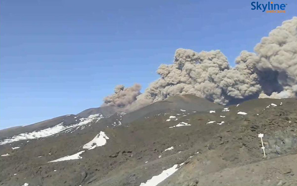 14:00: As I suggested previously, an eruption has started on Mount Etna. It was heralded at 9 am this morning by an intensification of seismic activity with 130 quakes felt by the population, including an M 4.0 event at a depth of 2 km, beneath Piano Pernicana. At 11 a.m. or so, a new fissure opened at the base of the South Crater (SEC) with an explosive and effusive activity still going on. Aan ash plume continues to rise above the volcano. Catania airport is still operating normally as the wind carries the ash in another direction but a crisis meeting is planned.