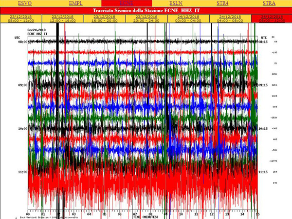 Activity started just before 9 am and the INGV seismographs recorded more than 130 earthquakes in just over three hours. The three most significant had magnitudes of M 4.3 with the epicentre located 6 km from Zafferana; M 4.0 at a depth of two kilometres in the Piano Pernicana area, on the northeast flank of the volcano, and M 3.9 in the Monte Palestra region, to the northwest. The population felt these three tremors, but with no harm to people and property.