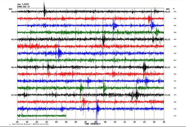 Activité sismique sur le Stromboli le 7 janviers 2019 (Source: INGV)