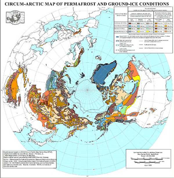 Carte montrant l’étendue du permafrost dans l’Arctique