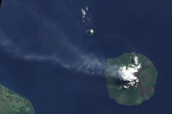 Activité éruptive sur l’île de Manam vue depuis lespace (Crédit photo: NASA)