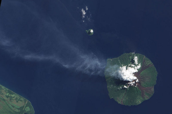 The 10-km-wide island of Manam lies 13 km off the northern coast of mainland Papua New Guinea and is one of the country’s most active volcanoes.
