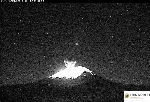 A strong explosion took place at Popocatepetl at 21:06 (local time) on January 22nd, 2019. The volcano ejected incandescent materials as far as 2 km on its slopes. The Washington VAAC indicated that the ash plume generated by the explosion reached a height of about 7 km above sea level.