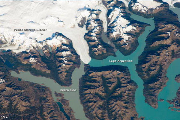 Perito Moreno, Brazo Rico et Lago Argentino (Source: NASA)