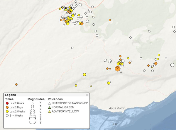 Sismicité de ces derniers jours dans la région du Kilauea (Source: USGS)