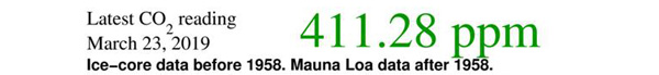 La courbe de Keeling, tracée au vu des concentrations se CO2 au sommet du Mauna Loa (Hawaii), confirme cette hausse des émissions de dioxyde de carbone. Depuis plusieurs semaines elles dépassent le seuil de 410 ppm, ce qui est considérable et inquiétant.