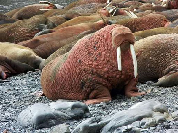 En septembre 2009, des centaines de morses ont été trouvés morts sur la côte nord-ouest de l’Alaska. La découverte coïncidait avec les rapports scientifiques précisant que la glace de l’Océan Arctique avait atteint le troisième niveau le plus bas jamais enregistré. Le Centre pour la Diversité Biologique a déclaré que le recul de la banquise prive les femelles et leurs petits de leur habitat naturel, de sorte qu’ils sont obligés d’atteindre le rivage et se rassemblent en groupes importants en compagnie des gros mâles. Lorsque quelque chose les effraye – l’activité humaine par exemple – des bousculades (« stampedes ») peuvent se produire et on pense que les jeunes morses ont péri sous le poids des adultes.