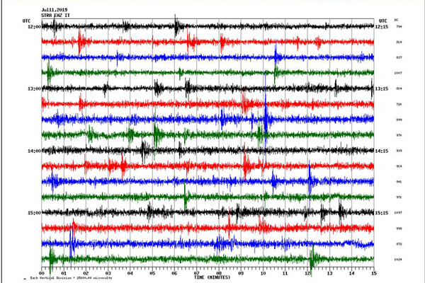 Les tracés sismiques montrent que l’activité est intense, sans être exceptionnelle (Source : INGV)