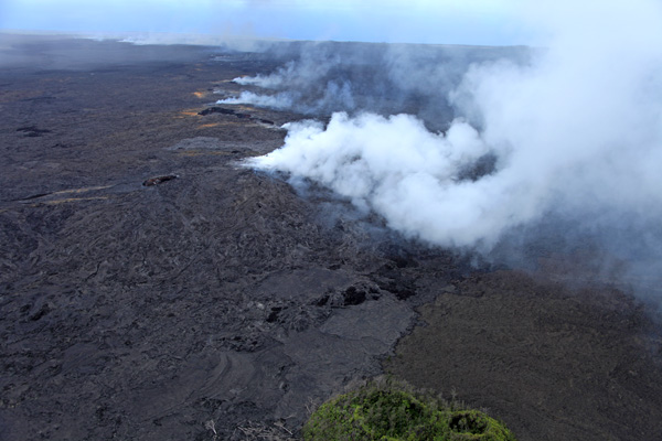 The youngest Hawaiian volcanoes typically have two or three rift zones depending on whether they are built up against a neighbouring volcano. In the case of Kilauea, there are only two rift zones because the volcano is buttressed against the southeastern slope of Mauna Loa. Kilauea’s two rift zones are nearly parallel to Mauna Loa’s rift zones reflecting this buttressing and the rift zones separate the relatively stable northern flank from the more mobile southern flank of the volcano. When magma intrudes into the rift, the northern flank remains stable against Mauna Loa to the north, and Kilauea’s southern flank is forced southward to accommodate the additional magma.