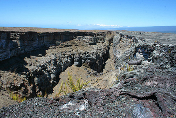 Rift zones are areas of weakness in the volcano which form early in its lifetime, likely due to spreading of the volcano as it settles. Volcanic rift zones provide the easiest pathways for magma to travel underground from the summit storage region, with successive eruptions from the rift zones building up the volcano’s flanks.