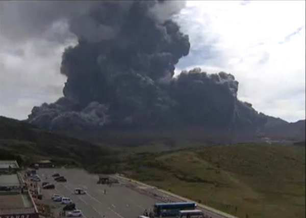 Séquence éruptive sur le Mont Aso (Crédit photo: JMA)