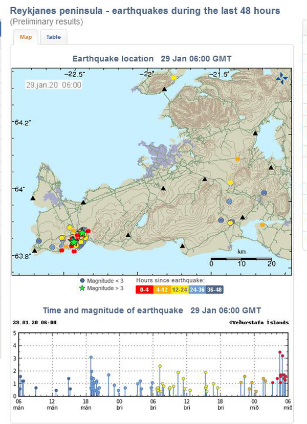 As I put it before, seismic activity increased on Janyary 29th in the morning, with two earthquakes above M 3.0, followed by an M 2.7 event.