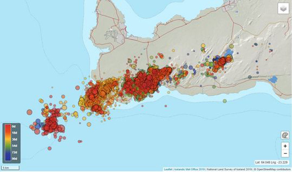 Le 28 mars 2020, un essaim sismique a été enregistré à Eldey, ce qui prouve que l’activité affecte tous les systèmes volcaniques de la Péninsule et de la Dorsale de Reykjanes qui se trouvent en limite dee plaques tectoniques mentionnées précédemment. Il convient de noter que les systèmes volcaniques d’Eldey, Reykjanes, Svartsengi et Krýsuvík se trouvent à cheval sur ces limites de plaques. Le SAB estime qu’il est essentiel de surveiller l’activité en cours dans la Péninsule de Reykjanes dans son ensemble et non par secteur, et de comparer cette activité avec des événements plus anciens dans la région. On pourra ainsi essayer de comprendre la cause des phénomènes actuels et tenter de prévoir l’évolution possible de la situation.