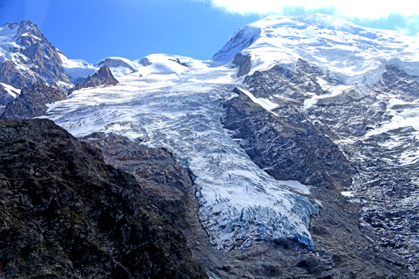 Little is known about the evolution of the climate at very high altitudes due to the lack of meteorological data in these hostile and inaccessible regions. In the Alps, there are very few weather stations located above 4,000 m above sea level and with readings covering more than 10 years. Glaciers therefore represent unique indicators of the climate at these altitudes and over the long term. The numerous « hanging glaciers » at very high altitude only owe their stability to the fact of being stuck by the cold to the rock below. If the temperature drops to zero degrees, water will flow, the glacier will skid on these very steep slopes and glaciers will cause large avalanches of ice, with a real danger for the valley.