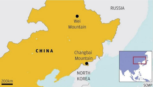 Carte montrant les volcans Paektu (ou Changbai) et Wei (Source : South China Morning Post)