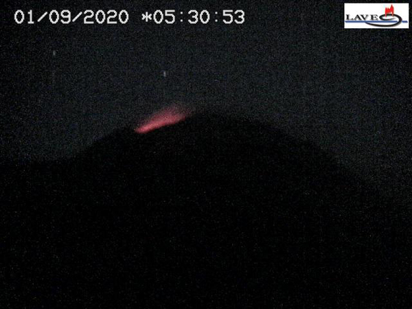 Le Cratère SE de l’Etna vu par la webcam L.A.V.E. le 1er septembre 2020.