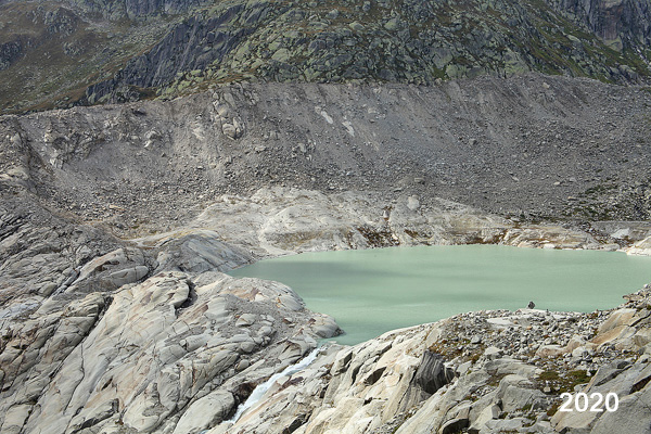 Le long du sentier qui conduit à la grotte de glace, je conseille vivement de faire des haltes pour lire les panneaux explicatifs bilingues (allemand – anglais) judicieusement installés par les autorités suisses et qui évoquent le recul du glacier dans les prochaines décennies