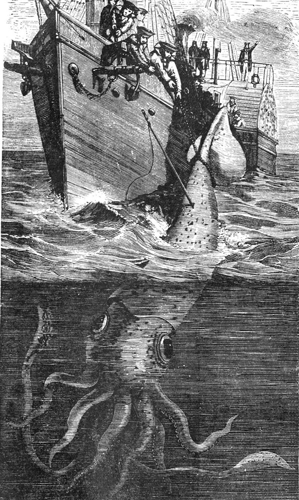 L’« Alecton » tente de capturer un calmar géant en 1861 (Source : Wikipedia)