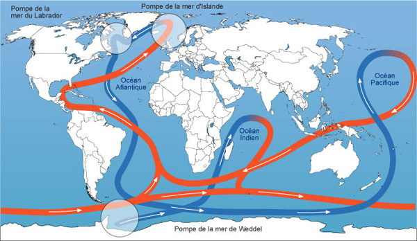 Circulation thermohaline globale et dans l’Atlantique (Source: GIEC).