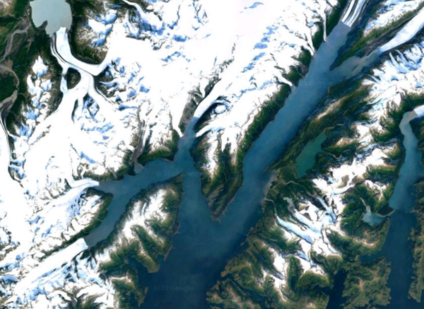 Vue satellite du fjord de Barry Arm en 2020 (Source : NASA)